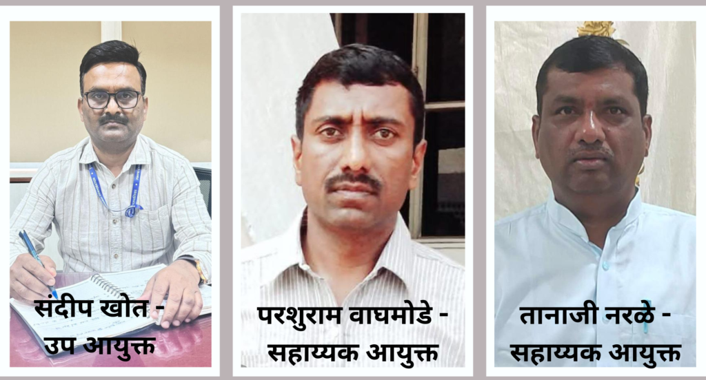 सहाय्यक आयुक्त परशुराम वाघमोडे यांच्याकडे इ क्षेत्रीय कार्यालयाचा तर तानाजी नरळे यांच्याकडे आपत्ती व्यवस्थापन, कामगार कल्याण व अभिलेख कक्षाचा दिला पदभार..