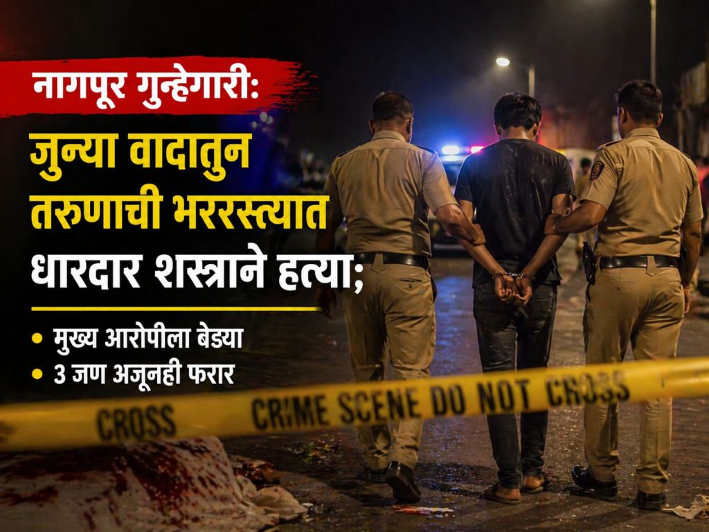नागपूर (pragatbharat.com) : उपराजधानीत गुन्हेगारांचे धाडस दिवसेंदिवस वाढत असल्याचे चित्र दिसत आहे. नागपूरमध्ये एका तरुणाची जुन्या वादातून धारदार शस्त्राने वार करून निर्घृण हत्या करण्यात आल्याची धक्कादायक घटना घडली आहे. या रक्तपातामुळे शहरात मोठी खळबळ उडाली असून पोलिसांनी या प्रकरणातील मुख्य आरोपीला अवघ्या काही तासांत अटक केली आहे, मात्र त्याचे तीन साथीदार अद्याप फरार आहेत.